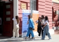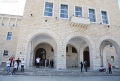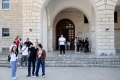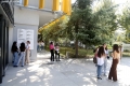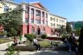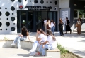 Students outside of the Polytechnic University of Tirana during the first day of the academic year. About 20 thousand female students will sit for the first time in university auditoriums.