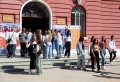 Students exiting the Faculty of History and Philology during the first day of the academic year. About 20 thousand female students will sit for the first time in university auditoriums.