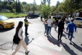 Students outside of the Faculty of Economy during the first day of the academic year. About 20 thousand female students will sit for the first time in university auditoriums.