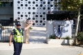 Police officer outside of the Faculty of Economy during the first day of the academic year. About 20 thousand female students will sit for the first time in university auditoriums.