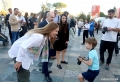 Minister of Tourism and Environment, Mirela Kumbaro during an activity in front of the national historical museum, where its mosaic has been re-conceptualized as an image showing the Albanian flora and fauna. The activity marks the launch of the campaign Albania is biodiversity, which aims at discussions and reflections on the nature of Albania.