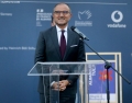 The Minister of Tourism and Environment, Mirela Kumbaro and the Ambassador of Germany in Tirana, Karl Bergner, the Chargé d'Affaires of the European Union in Tirana, Ambassador Luigi Soreca and the CEO of Vodafone, Balazs Revez during an activity in front of the national historical museum, where its mosaic has been re-conceptualized as an image showing the Albanian flora and fauna. The activity marks the launch of the campaign Albania is biodiversity, which aims at discussions and reflections on the nature of Albania.