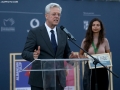 The Chargé d'Affaires of the European Union in Tirana, Ambassador Luigi Soreca, speaking during an activity in front of the national historical museum, where its mosaic has been re-conceptualized as an image showing the Albanian flora and fauna. The activity marks the launch of the campaign Albania is biodiversity, which aims at discussions and reflections on the nature of Albania.