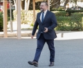 MINISTERS AND MPS OUTSIDE PARLIAMENT - Minister for Europe and Foreign Affairs, Igli Hasani entering a parliamentary session. During the session, a minute's silence was held for the Kosovar officer Afrim Bunjaku, who was killed in the line of duty in the village of Banjska in Zvecan, north of Kosovo.