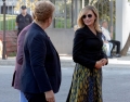 MPs Nasip Naco and Blerina Gjylameti entering a parliamentary session. During the session, a minute's silence was held for the Kosovar officer Afrim Bunjaku, who was killed in the line of duty in the village of Banjska in Zvecan, north of Kosovo.