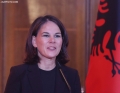 The Minister for Europe and Foreign Affairs, Igli Hasani, the Minister of Foreign Affairs of the Federal Republic of Germany, Annalena Baerbock after a joint press conference after a meeting of the Foreign Ministers of the EU and those of the Western Balkans in Tirana, in the framework of the Berlin Process. This meeting precedes the Berlin Process Summit that will be held in Tirana on October 16, 2023. The second session of the meeting and the family photo was boycotted by Serbian Foreign Minister Ivica Dacic after debates with German Minister Baerbock regarding the events in Kosovo.