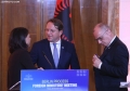 The Minister for Europe and Foreign Affairs, Igli Hasani speaking during a joint press conference after a meeting of the Foreign Ministers of the EU and those of the Western Balkans in Tirana, in the framework of the Berlin Process. This meeting precedes the Berlin Process Summit that will be held in Tirana on October 16, 2023. The second session of the meeting and the family photo was boycotted by Serbian Foreign Minister Ivica Dacic after debates with German Minister Baerbock regarding the events in Kosovo.