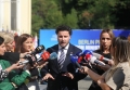 Prime Minister of Montenegro and Acting Minister for Foreign Affairs, Dritan Abazovic speaking to the journalists after a meeting of the Foreign Ministers of the EU and those of the Western Balkans in Tirana, in the framework of the Berlin Process. This meeting precedes the Berlin Process Summit that will be held in Tirana on October 16, 2023. The second session of the meeting and the family photo was boycotted by Serbian Foreign Minister Ivica Dacic after debates with German Minister Baerbock regarding the events in Kosovo.