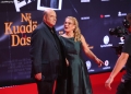 Ndricim Xhepa and Zamira Kita during the premiere of the film Ne kaudere te Dashurisa directed by Koloreto Cukali in the premises of the Palace of Congresses.