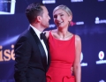 Sara Hoxha and Ledion Lico during the premiere of the film Ne kaudere te Dashurisa directed by Koloreto Cukali in the premises of the Palace of Congresses.