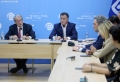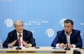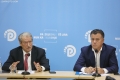 Former Prime Minister, Sali Berisha and MP Flamur Noka speaking during a press conference from the headquarters of the democratic party. Berisha attacked Prime Ministers Edi Rama and Lulzim Basha, while saying that Rama is afraid of the report of the May 14 elections.