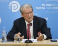 Former Prime Minister, Sali Berisha speaking during a press conference from the headquarters of the democratic party. Berisha attacked Prime Ministers Edi Rama and Lulzim Basha, while saying that Rama is afraid of the report of the May 14 elections.