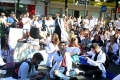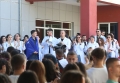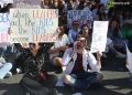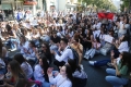 Medical students protesting before the Ministry of Education. They have gathered near the Faculty of Medicine to then march along Dibra Street and stop in front of the Ministry of Education where they have opposed the law that forces them to work for 3-5 years in their country after completing their studies or pay full school fee. The students have refused the fee of 240,000 lek if they do not refuse the work contract for 2-5 years in Albania.