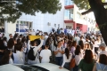 Medical students before the march to the Ministry of Education. They have gathered near the Faculty of Medicine to then march along Dibra Street and stop in front of the Ministry of Education where they have opposed the law that forces them to work for 3-5 years in their country after completing their studies or pay full school fee. The students have refused the fee of 240,000 lek if they do not refuse the work contract for 2-5 years in Albania.
