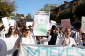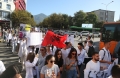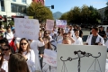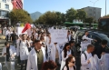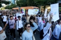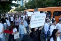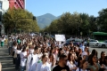 Medical students during the march to the Ministry of Education. They have gathered near the Faculty of Medicine to then march along Dibra Street and stop in front of the Ministry of Education where they have opposed the law that forces them to work for 3-5 years in their country after completing their studies or pay full school fee. The students have refused the fee of 240,000 lek if they do not refuse the work contract for 2-5 years in Albania.