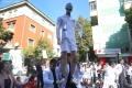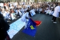 MEDICAL STUDENTS PROTEST - Medical students throwing eggs during a protest in front of the Ministry of Education. They have gathered near the Faculty of Medicine to then march along Dibre Street and stop in front of the Ministry of Education where they have opposed the law that forces them to work for 3-5 years in their country after completing their studies or pay full school fee. The students have refused the fee of 240,000 lek if they do not refuse the work contract for 2-5 years in Albania.