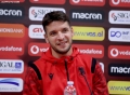 Player of the Albanian national football team, Berat Gjimshiti speaking at a press conference before the match with the national football team of the Czech Republic, valid for the European 2024 qualifiers.