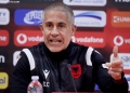 The coach of the Albanian national football team, Sylvinho speaking at a press conference before the match with the national football team of the Czech Republic, valid for the European 2024 qualifiers.