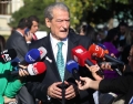 Former Prime Minister Sali Berisha speaking to journalists before entering a parliamentary session. During it, there were debates regarding the approach towards Kosovo after the event in Banjske.