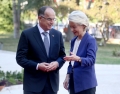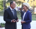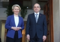 The President of the Republic, Bajram Begaj and the President of the European Commission, Ursula Von Der Leyen during an official reception at the Presidency. von der Leyen arrived in Albania a day before the Summit of the leaders of the Berlin Process in Tirana.