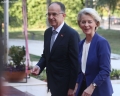 BEGAJ RECEIVES VON DER LEYEN - The President of the Republic, Bajram Begaj and the President of the European Commission, Ursula Von Der Leyen during an official reception ceremony at the Presidency. von der Leyen arrived in Albania a day before the Summit of the leaders of the Berlin Process in Tirana.