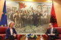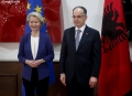 The President of the Republic, Bajram Begaj and the President of the European Commission, Ursula Von Der Leyen during an official reception ceremony at the Presidency. von der Leyen arrived in Albania a day before the Summit of the leaders of the Berlin Process in Tirana.