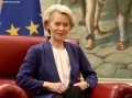 President of the European Commission, Ursula Von Der Leyen during an official reception at the Presidency. Von der Leyen arrived in Albania a day before the Summit of the leaders of the Berlin Process in Tirana.