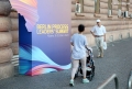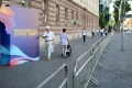 People walking next to the posters for the Summit of Leaders in the framework of the Berlin Process, in Tirana one day before its holding. This is the first time that this summit is held in a non-EU state, where the heads of state of the EU and the Western Balkans will gather.