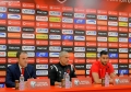 SYLVINHO AND STRAKOSHA SPEAKING AT THE CONFERENCE - The coach of the Albanian national football team, Sylvinho and the player Thomas Strakosha speaking at a press conference before the friendly match with Bulgaria.