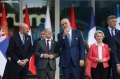Prime Minister Edi Rama, President of the European Commission, Ursula Von Der Leyen, Chancellor Olaf Scholz and President of the European Council, Charles Michel getting ready for the family photo before the Berlin Process Summit in Tirana. This is the first time that the proceedings of this summit are held in a non-EU state, where the heads of state of the EU and the Western Balkans will gather. During the reception ceremony, the French president, Emmanuel Macron, was absent. The Serbian Prime Minister, Ana Brnabic did not take part in the family photo.