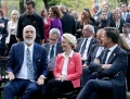 Rector of the College of Europe, Federica Mogherini, Prime Minister Edi Rama, President of the European Commission, Ursula Von Der Leyen and Dutch Prime Minister Mark Rutte during the opening ceremony of the College of Europe campus in Tirana, the first campus outside the EU.