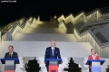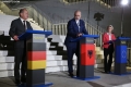 RAMA, VON DER LEYEN AND SCHOLZ IN CONFERENCE - Prime Minister Edi Rama, German Chancellor, Olaf Scholz and the President of the European Commission, Ursula Von Der Leyen after a joint press conference in front of the pyramid of Tirana, after the leaders' summit in Tirana, in the framework of the Berlin Process. They talked about the achievements of the summit, developments in the region and other issues.