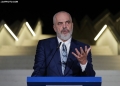 Prime Minister Edi Rama speaking during a joint press conference of himself, Scholz and Von Der Leyen in front of the Tirana pyramid, after the leaders' summit in Tirana, in the framework of the Berlin Process. They talk about the achievements of the summit, developments in the region and other issues.