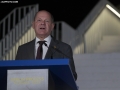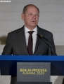 German Chancellor, Olaf Scholz speaking during a joint press conference of himself, Rama and Von Der Leyen in front of the Tirana pyramid, after the leaders' summit in Tirana, in the framework of the Berlin Process. They talk about the achievements of the summit, developments in the region and other issues.