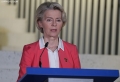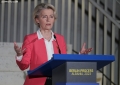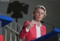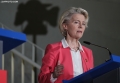 President of the European Commission, Ursula Von Der Leyen speaking during a joint press conference of her, Rama and Scholz in front of the pyramid of Tirana, after the leaders' summit in Tirana, in the framework of the Berlin Process. They talk about the achievements of the summit, developments in the region and other issues.