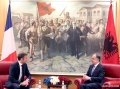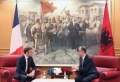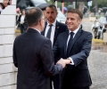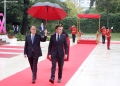The President of the Republic, Bajram Begaj and French President Emmanuel Macron speaking during an official reception ceremony at the Presidency. Macron arrived late Monday afternoon, not participating in the leaders' summit in Tirana, in the framework of the Berlin Process.