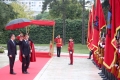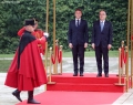 BEGAJ RECEIVES MACRON - The President of the Republic, Bajram Begaj and French President Emmanuel Macron during an official reception ceremony at the Presidency. Macron arrived late Monday afternoon, not participating in the leaders' summit in Tirana, in the framework of the Berlin Process.