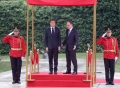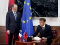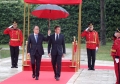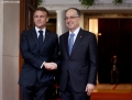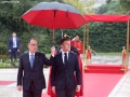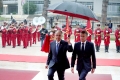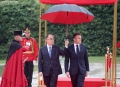 The President of the Republic, Bajram Begaj and French President Emmanuel Macron during an official reception ceremony at the Presidency. Macron arrived late Monday afternoon, not participating in the leaders' summit in Tirana, in the framework of the Berlin Process.