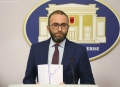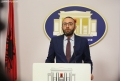 BARDHI SPEAKS AT THE CONFERENCE - Deputy Gazment Bardhi speaking during a press conference from the presidency of the parliament, after the end of the meeting of deputies with him and Sali Berisha. He spoke about the parliament and attacked Prime Minister Edi Rama.