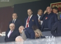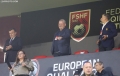The President of the FSF, Armand Duka, the member of the executive committee of the FSF, Lutfi Nuriu and the Minister of the Interior, Tualant Balla during the friendly football match, Albania vs Bulgaria, 2-0, played at the Air Albania stadium in Tirana.
