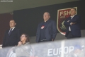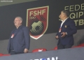 The president of the FSF, Armand Duka, the member of the executive committee of the FSF, Lutfi Nuriu during the friendly football match, Albania vs Bulgaria, 2-0, played at the Air Albania stadium in Tirana.