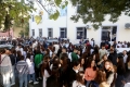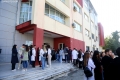 Medical students in front of the Faculty of Medicine gathered in protest before marching towards the Ministry of Education. They have gathered near the Faculty of Medicine to then march along Dibra Street and stop in front of the Ministry of Education where they have opposed the law that forces them to work for 3-5 years in their country after completing their studies or pay full school fee. The students have refused the fee of 240,000 lek if they do not refuse the work contract for 2-5 years in Albania.
