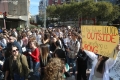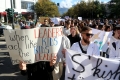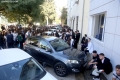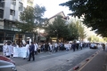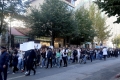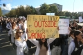 Medical students marching towards the Ministry of Education in protest. They have gathered near the Faculty of Medicine to then march along Dibra Street and stop in front of the Ministry of Education where they have opposed the law that forces them to work for 3-5 years in their country after completing their studies or pay full school fee. The students have refused the fee of 240,000 lek if they do not refuse the work contract for 2-5 years in Albania.