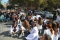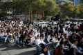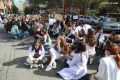 Medical students sitting in the street in protest in front of the Ministry of Education. They have gathered near the Faculty of Medicine to then march along Dibra Street and stop in front of the Ministry of Education where they have opposed the law that forces them to work for 3-5 years in their country after completing their studies or pay full school fee. The students have refused the fee of 240,000 lek if they do not refuse the work contract for 2-5 years in Albania.