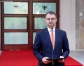 METE SPEAKS IN FRONT OF THE PRIME MINISTER'S OFFICE - The Minister of Finance and Economy, Ervin Mete, speaking for journalists in front of the Prime Minister's office, after a government meeting, regarding the approved decisions.