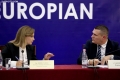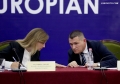 Chairperson of the National Council for European Integration, Jorida Tabaku and the head of SPAK, Altin Dumani speaking during a meeting of the National Council of European Integration, where Albania's challenges for integration and recommendations of the European Commission for the justice system.