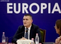 MP Toni Gogu, the Chairperson of the National Council for European Integration, Jorida Tabaku and the head of SPAK, Altin Dumani speaking during a meeting of the National Council of European Integration, where Albania's challenges for integration and recommendations of the European Commission for the justice system.