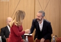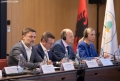Deputy Jorida Tabaku and the Charge d'Affaires of the European Union in Tirana, Ambassador Luigi Soreca speaking during a meeting of deputies with the CEC regarding the vote of immigrants. During the meeting, there were debates between the deputies, while Chief Commissioner Celibashi stated that political consensus is needed.