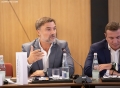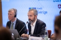 MP Enkelejd Alibeaj speaking during a meeting of deputies with the CEC regarding the vote of immigrants. During the meeting, there were debates between the deputies, while Chief Commissioner Celibashi stated that political consensus is needed.