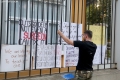 Students of the Faculty of Medicine placing banners on the railings of the Ministry of Education during a protest. The students reject the law that forces them to work for 3-5 years in their country after completing their studies or to pay the full school fee. The students have refused the fee of 240,000 lek if they do not refuse the work contract for 2-5 years in Albania.